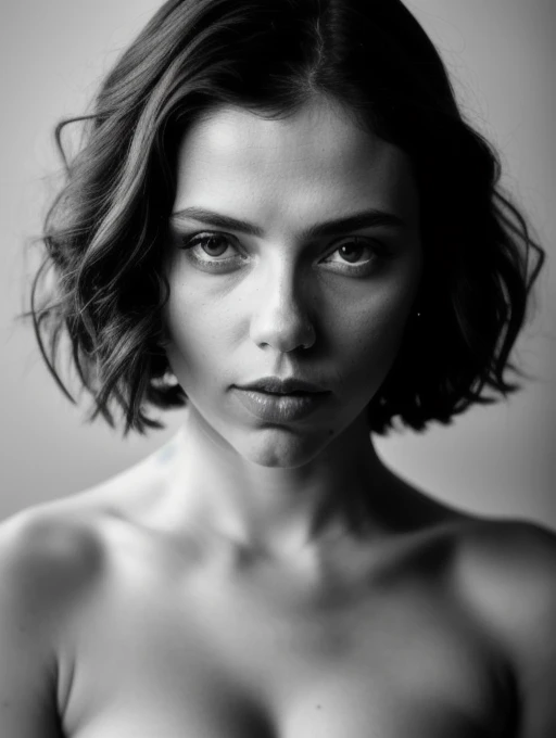 a closeup portrait of a playful maid, undercut hair, apron, amazing body, pronounced feminine feature, busty, kitchen, [blonde hair], freckles, flirting with camera